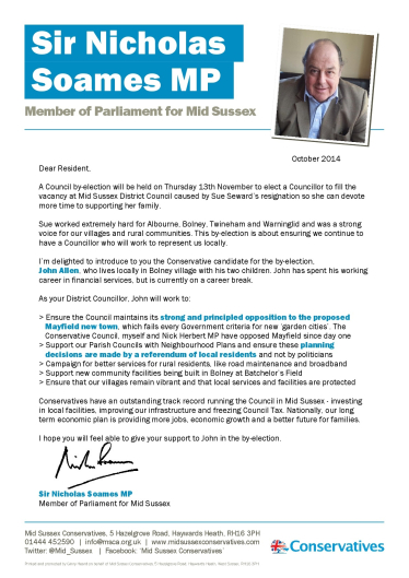 Elect a Councillor who will get things done locally 10th November 2014 Vote for John Allen in the Bolney by-election on Thursday 13th November. Local News