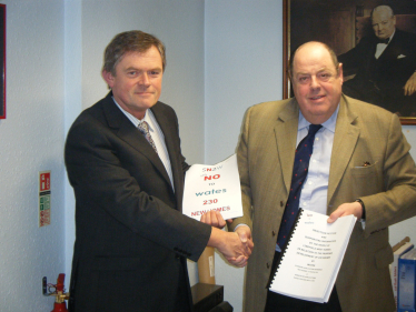 Nicholas Soames accepting a petition from Lindfield residents 22nd February 2013 Petition from residents objecting to the Wates’ proposal for 230 new houses on land to the east of Lindfield Local News