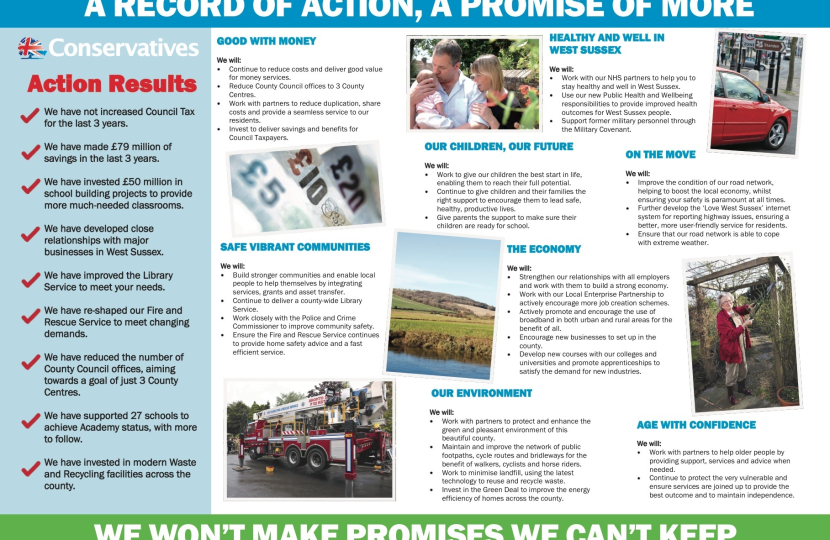 Louise Goldsmith West Sussex County Council Leader "County Councils are at the forefront of the local community. In West Sussex alone in 2013-2014 we will spend £535 million on 80% of our services from social services to roads and drains. This is action at a very local level that touches the community in real time, addressing their real issues which is why we urge everyone to come and vote on the 2nd of May to ensure their voice is heard. It is the local level where policies have a direct impact".