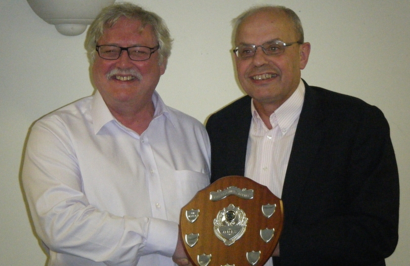 Richard Hilton, the Conservative Club Chairman, presents John de Mierre, Association Chairman with the Soames Shield for winning the Annual Quiz Competition.